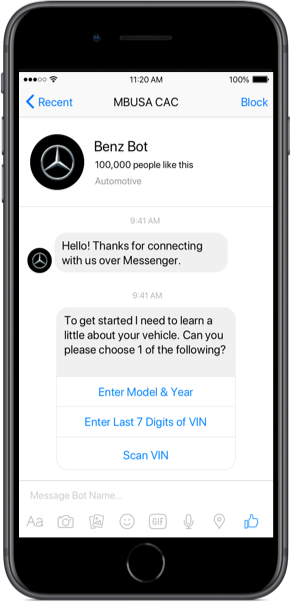Help customers resolve top issues with their vehicles via Facebook chatbot app.